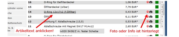 Gelb gekennzeichnete Artikel in den Teileaufstellungen unterhalb der Explosionszeichnungen sind nur noch in geringer Stückzahl verfügbar.