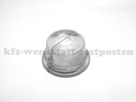 Positionsleuchte für Anbau. Lichtscheibe weiß. Grundplatte aus schwarzem Kunststoff.